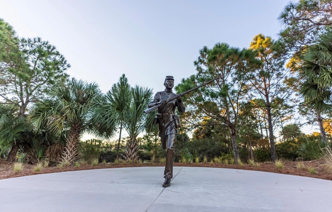 The project included a dedication plaza, honor wall, park benches, pavers surrounding a multi flag display, and eight life size bronze statues honoring women who served. In addition to the memorial elements, the work also included approximately 1,700 linear feet of ADA accessible paved sidewalks and wooden boardwalks, along with landscaping, irrigation, and lighting to support the overall function and presentation of the park.