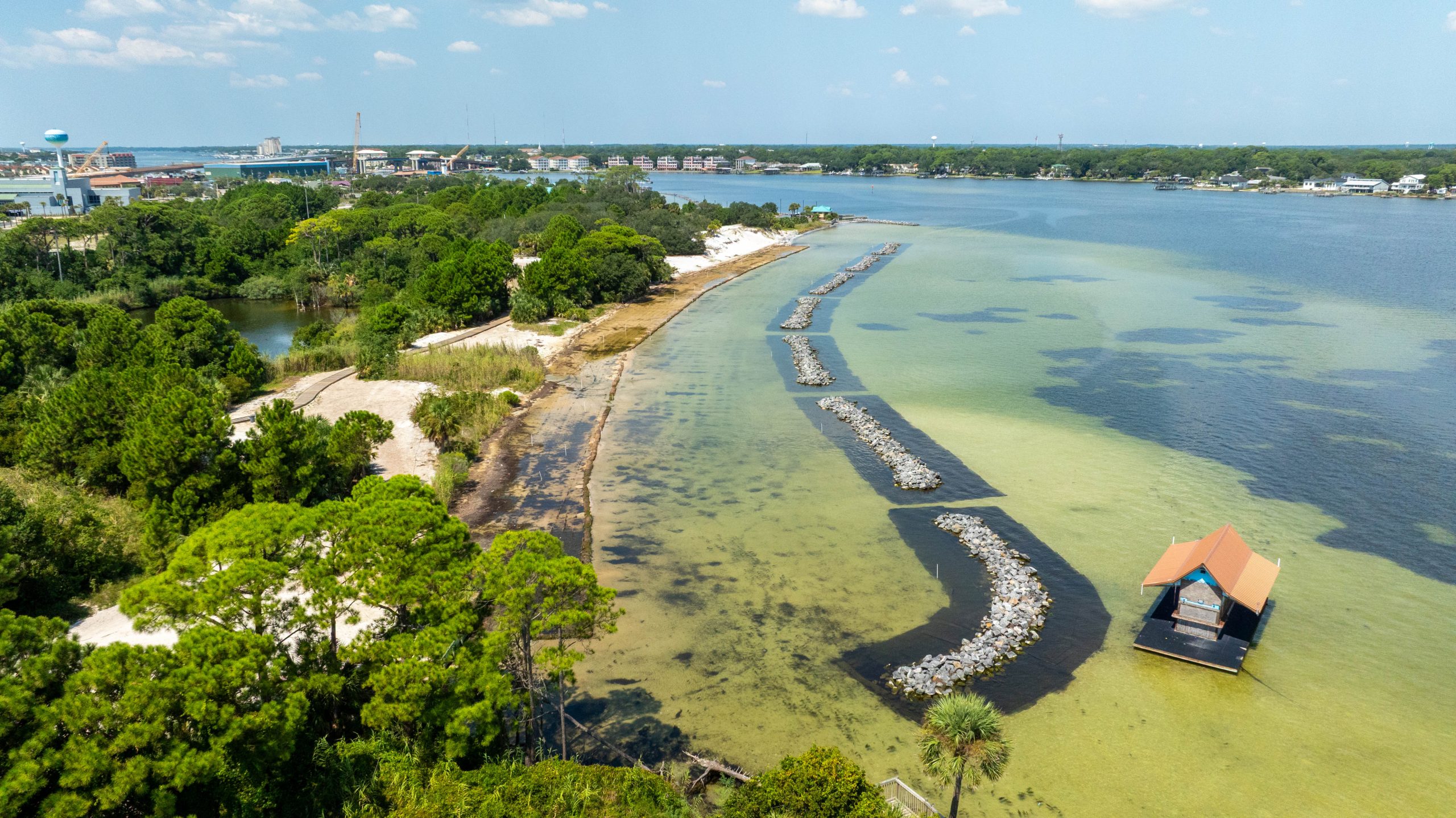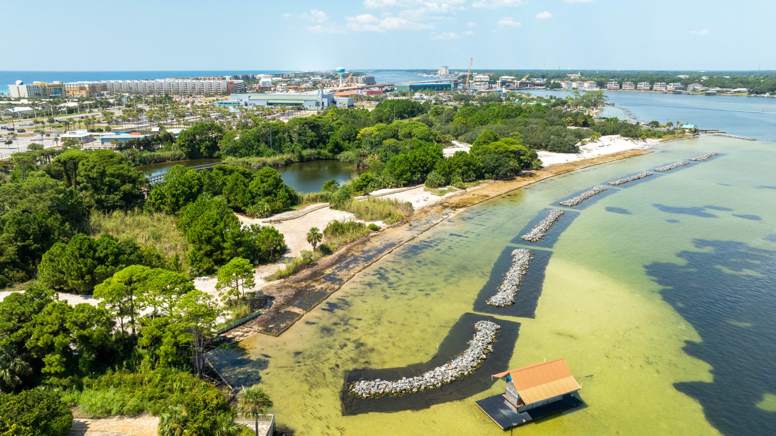 Veterans Park Shoreline Restoration Phase II expanded the work at Veterans Park through targeted waterfront improvements designed to strengthen shoreline performance, support long term resilience, and enhance the bayfront environment. Empire Builders Group delivered this phase as part of the continued development of the Veterans Park site on Okaloosa Island.